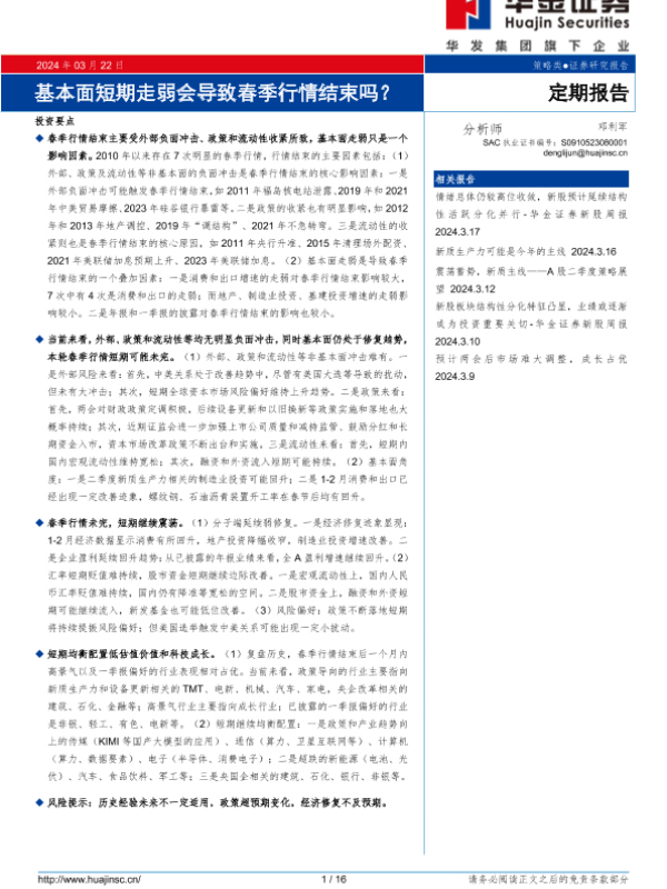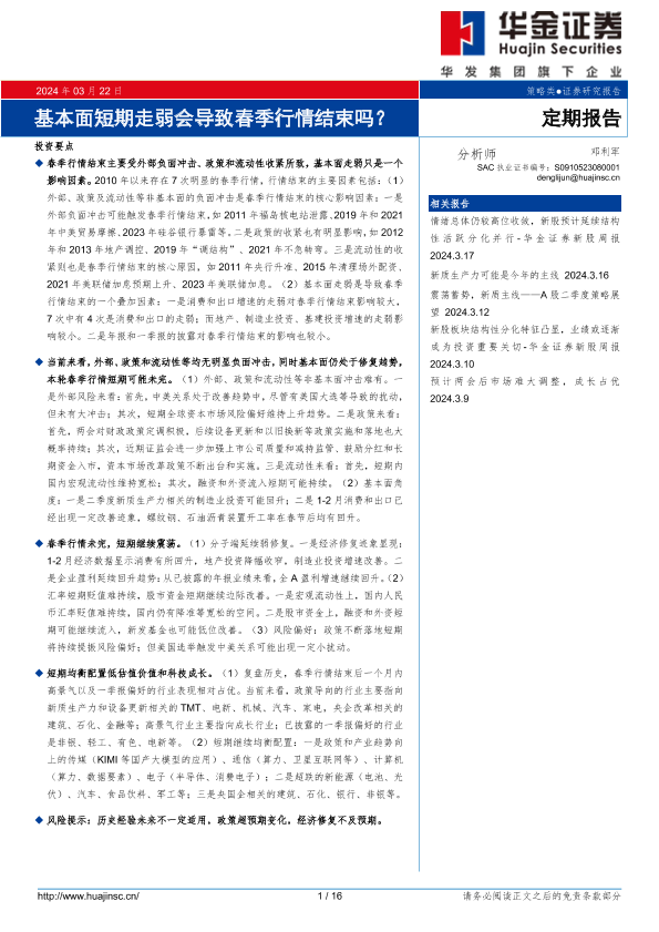 【华金证券】【20240322】基本面短期走弱会导致春季行情结束吗?-14页