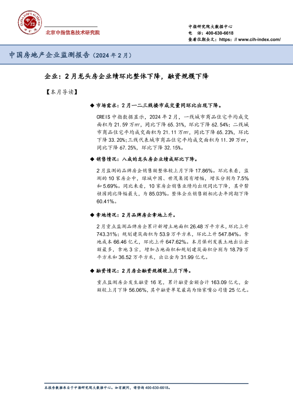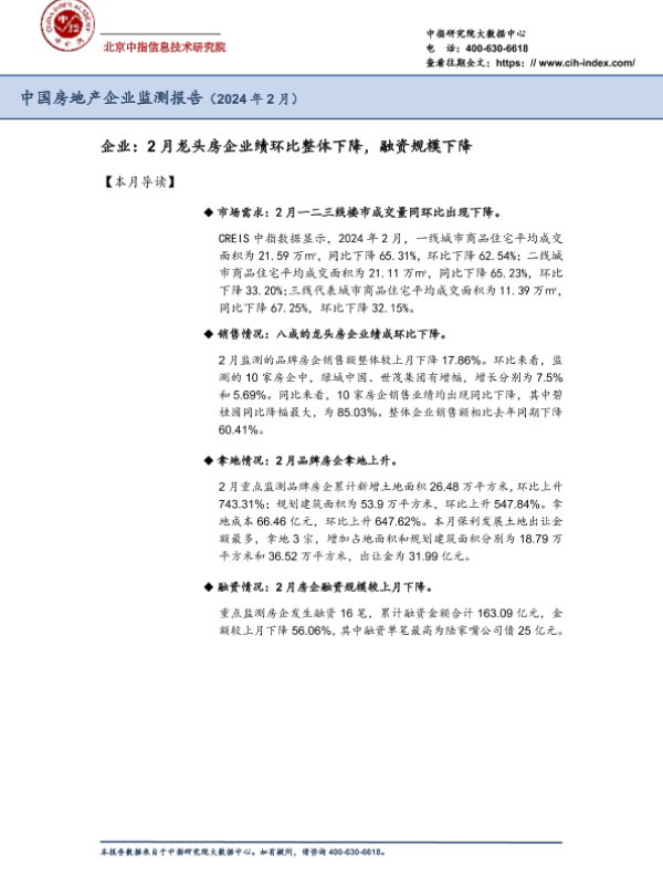 【中指研究院】【202402】房地产行业:中国房地产企业监测报告(2024年2月)-33页