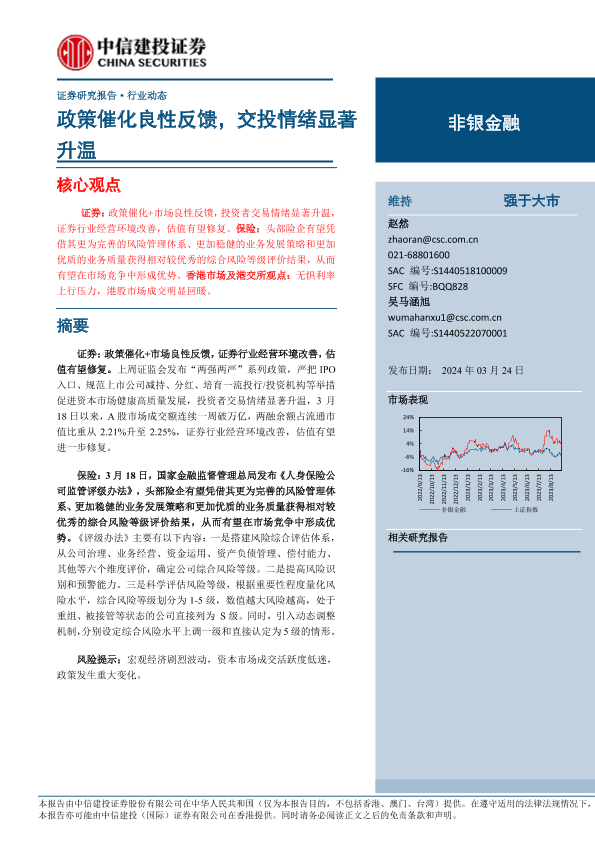 【中信建投证券】【20240324】非银金融行业:政策催化良性反馈,交投情绪显著升温-23页