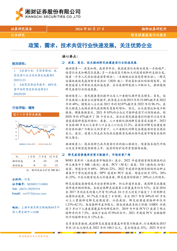 【湘财证券】【20240327】肺炎球菌疫苗行业报告:政策、需求、技术共促行业快速发展,关注优势企业-21页