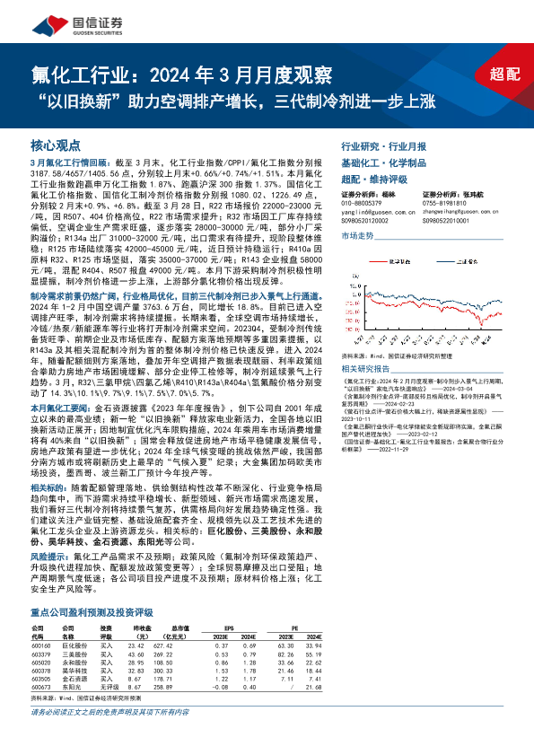 【国信证券】【20240329】氟化工行业2024年3月月度观察:“以旧换新”助力空调排产增长,三代制冷剂进一步上涨-29页