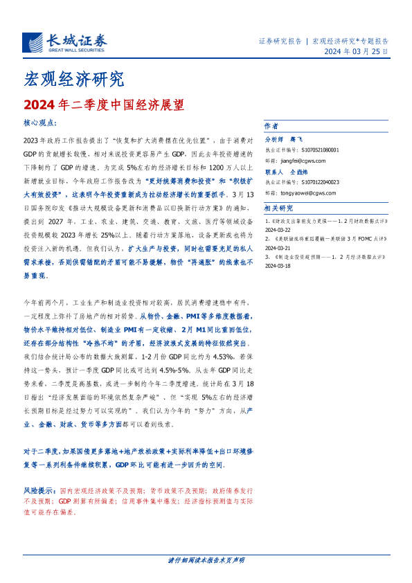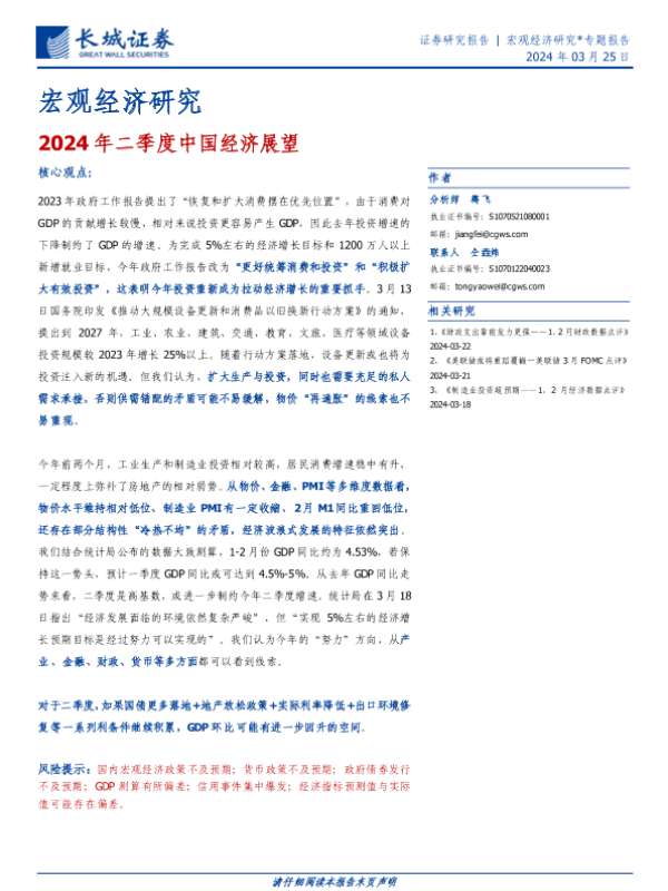 【长城证券】【20240325】2024年二季度中国经济展望-13页