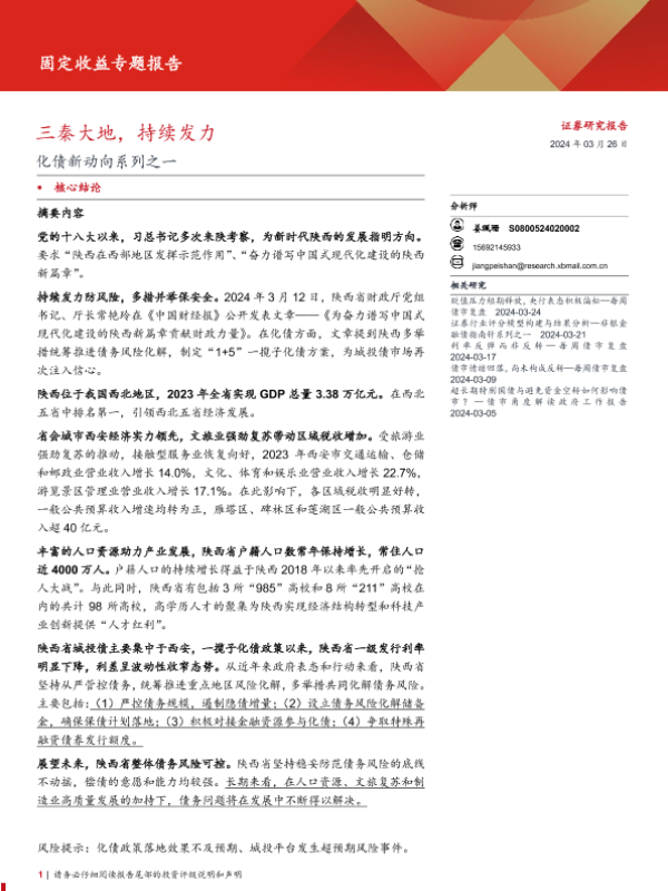 【西部证券】【20240326】化债新动向系列之一:三秦大地,持续发力-10页