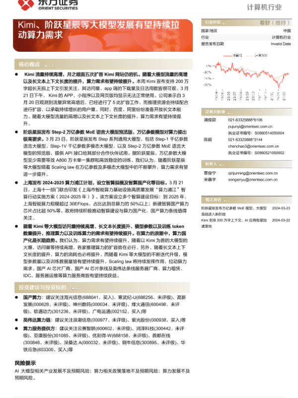 【东方证券】【20240324】计算机行业动态跟踪:Kimi、阶跃星辰等大模型发展有望持续拉动算力需求-10页