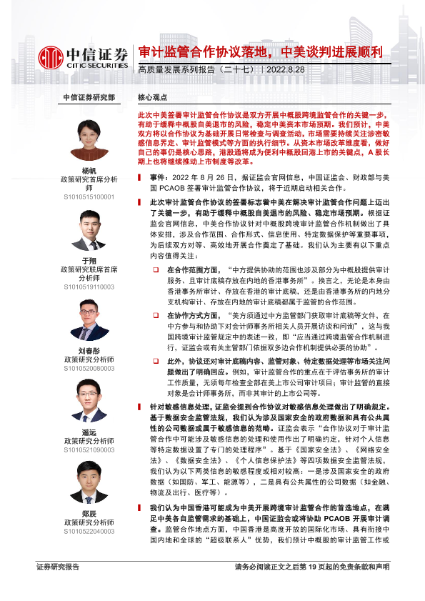 【中信证券】【20220828】高质量发展系列报告(二十七):审计监管合作协议落地,中美谈判进展顺利-20页
