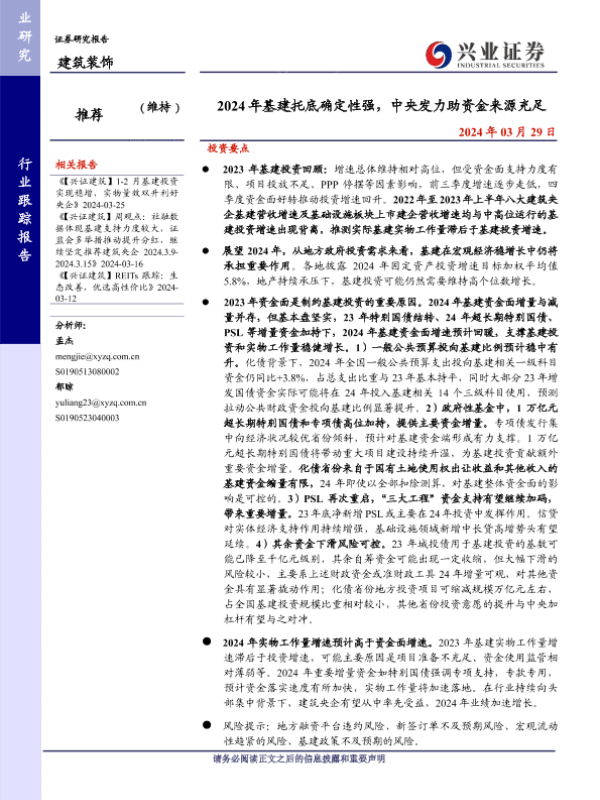 【兴业证券】【20240329】2024年基建托底确定性强,中央发力助资金来源充足-27页