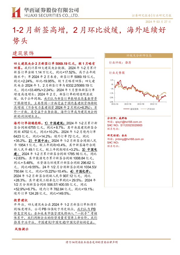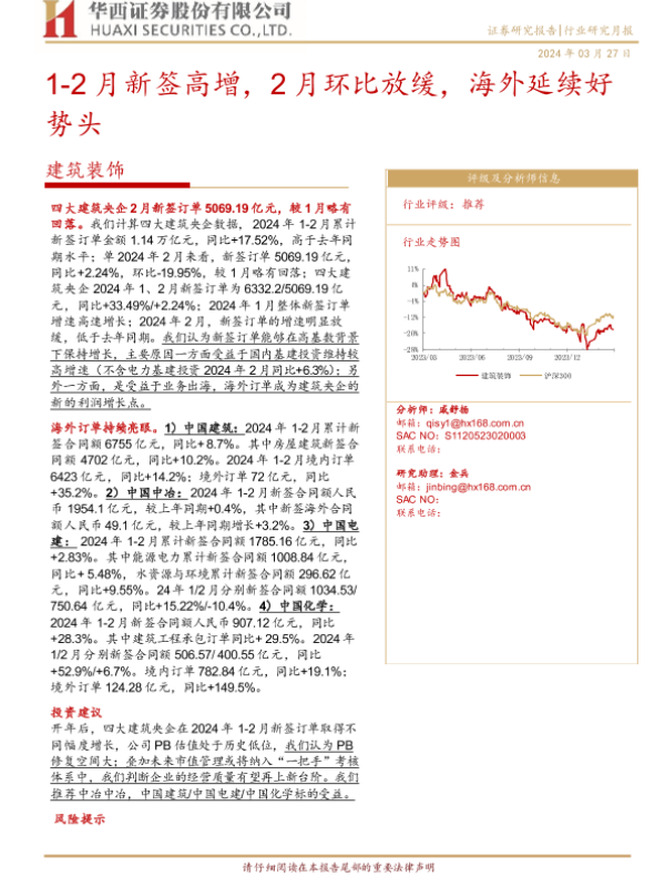 【华西证券】【20240327】建筑装饰行业研究月报:1-2月新签高增,2月环比放缓,海外延续好势头-11页