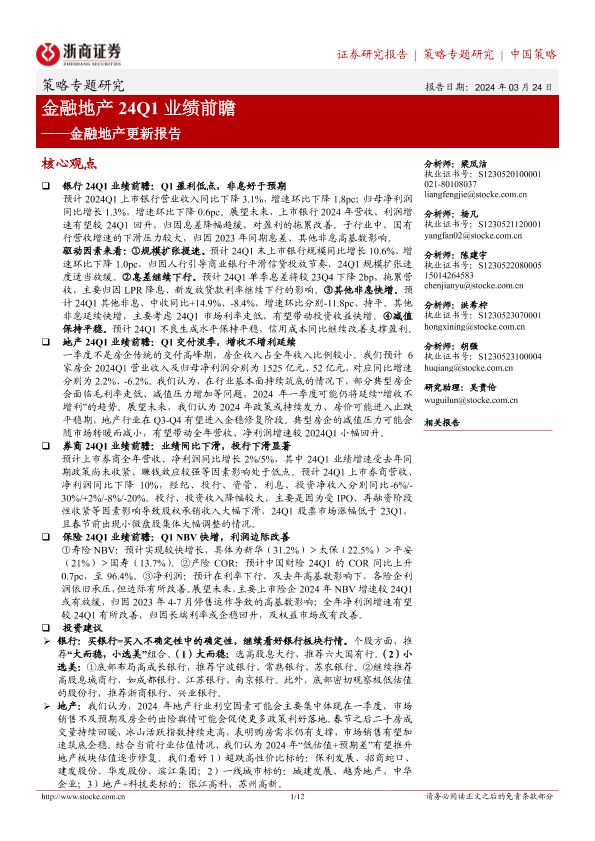 【浙商证券】【20240324】金融地产24Q1业绩前瞻-12页