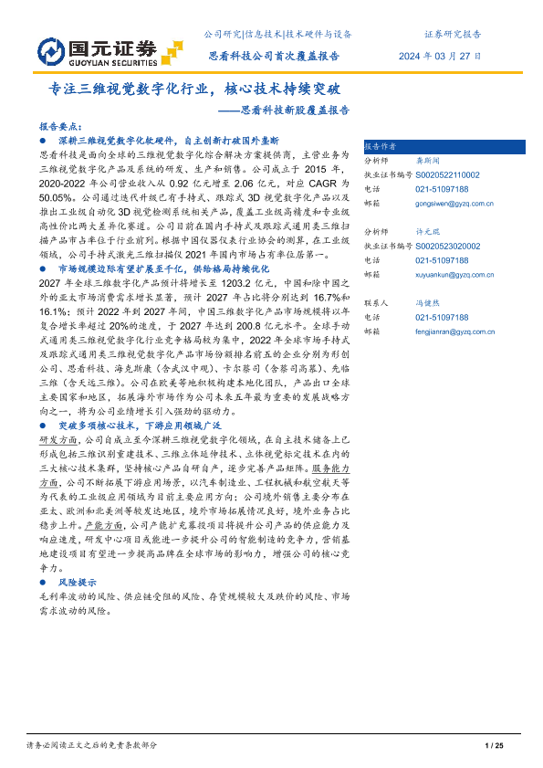 【国元证券】【20240327】专注三维视觉数字化行业,核心技术持续突破——思看科技新股覆盖报告-23页