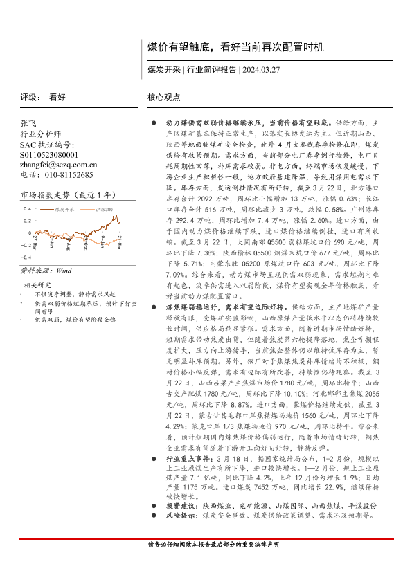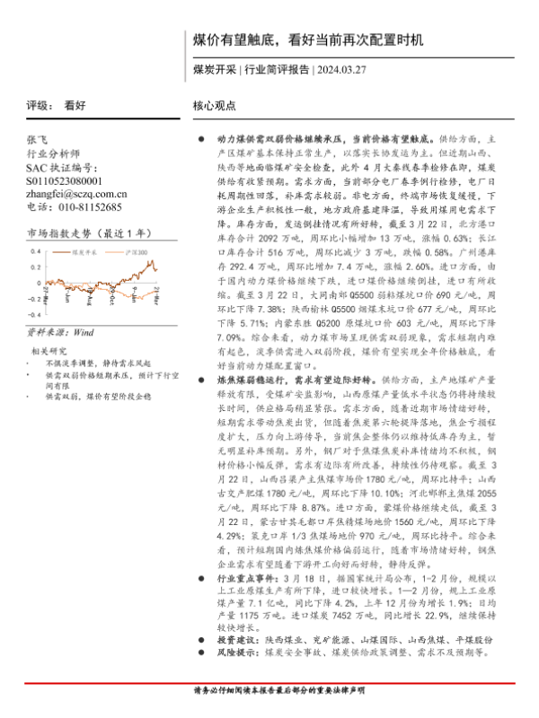 【首创证券】【20240327】煤炭开采行业简评报告:煤价有望触底,看好当前再次配置时机-14页