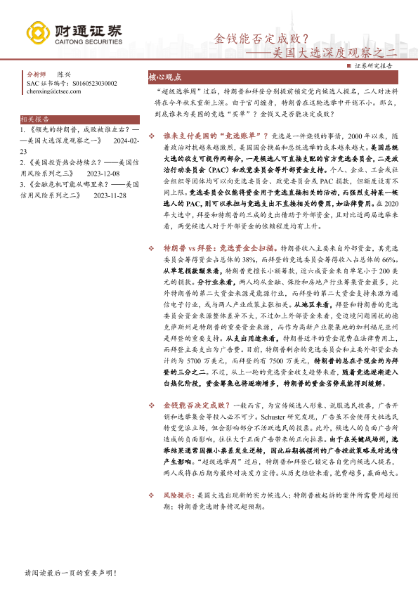 【财通证券】【20240325】美国大选深度观察之二:金钱能否定成败?-17页