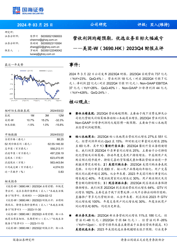 【国海证券】【20240325】美团-W(3690.HK)2023Q4财报点评:营收利润均超预期,优选业务目标大幅减亏-11页