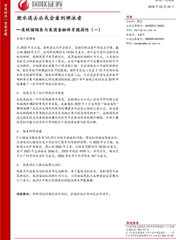 【国联证券】【20240324】美联储缩表与美国金融体系脆弱性(一) 潮水退去后或会看到裸泳者-11页