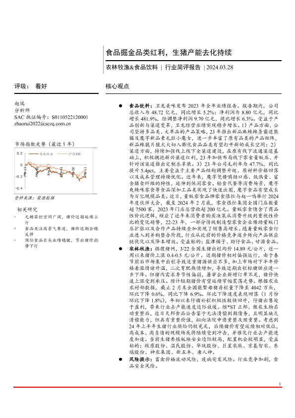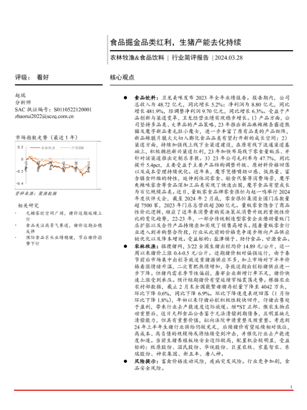 【首创证券】【20240328】农林牧渔&食品饮料行业简评报告:食品掘金品类红利,生猪产能去化持续-13页