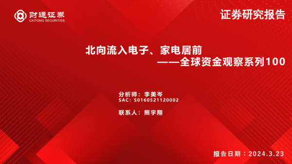 【财通证券】【20240323】全球资金观察系列100:北向流入电子、家电居前-30页