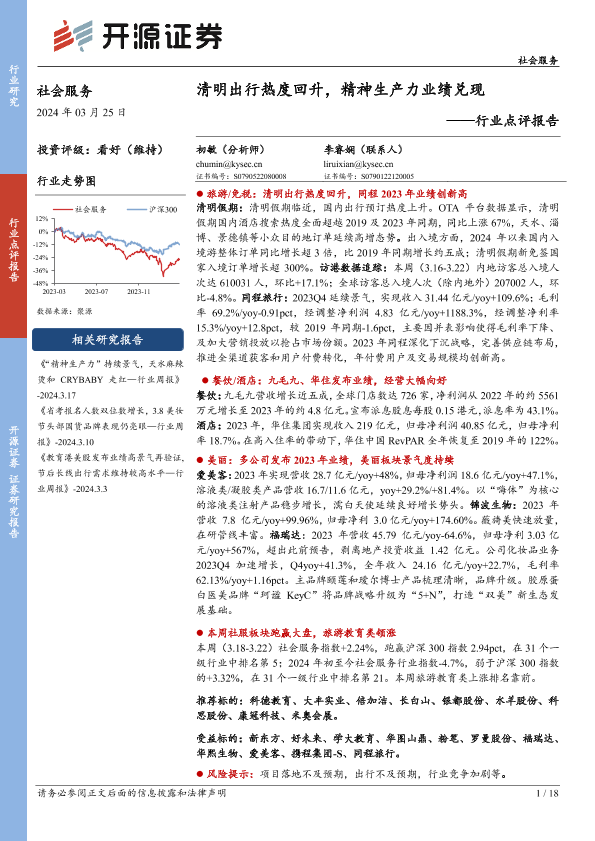 【开源证券】【20240325】社会服务行业点评报告:清明出行热度回升,精神生产力业绩兑现-18页