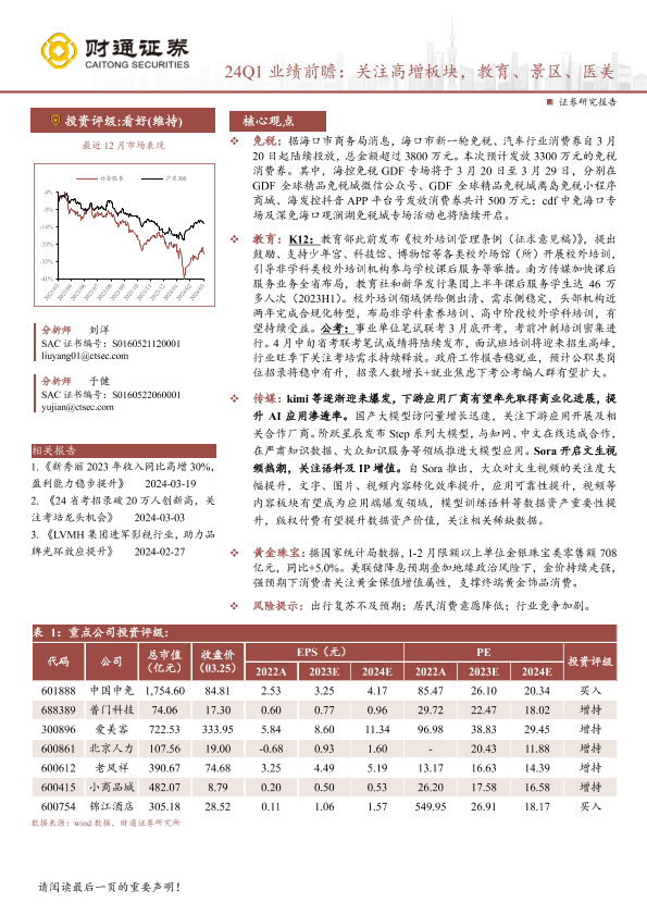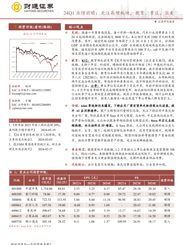 【财通证券】【20240326】社会服务行业24Q1业绩前瞻:关注高增板块,教育、景区、医美-25页