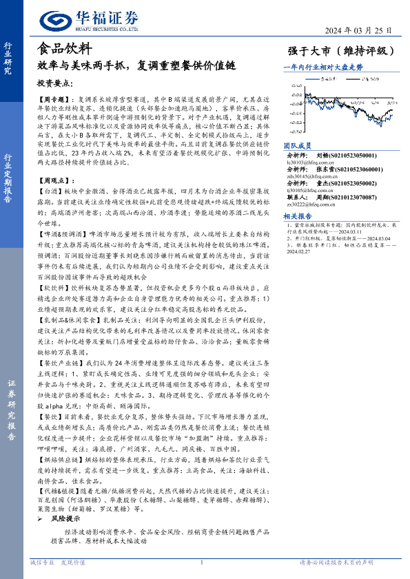 【华福证券】【20240325】食品饮料行业定期报告:效率与美味两手抓,复调重塑餐供价值链-20页