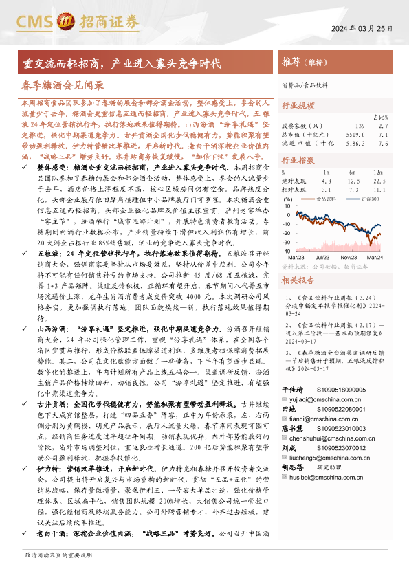 【海通证券】【20240325】食品饮料行业春季糖酒会见闻录:重交流而轻招商,产业进入寡头竞争时代-20页