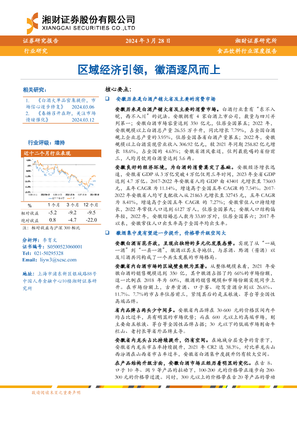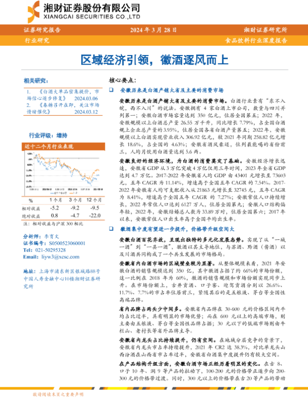 【湘财证券】【20240328】食品饮料行业深度报告:区域经济引领,徽酒逐风而上-24页