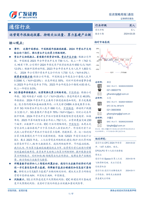 【广发证券】【20240325】通信行业:运营商年报接连披露,持续关注流量、算力基建产业链-17页