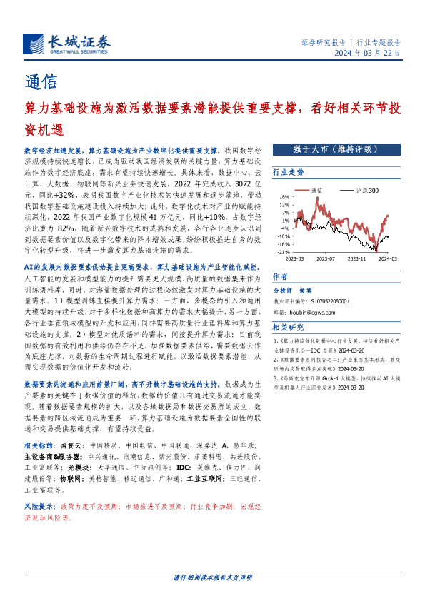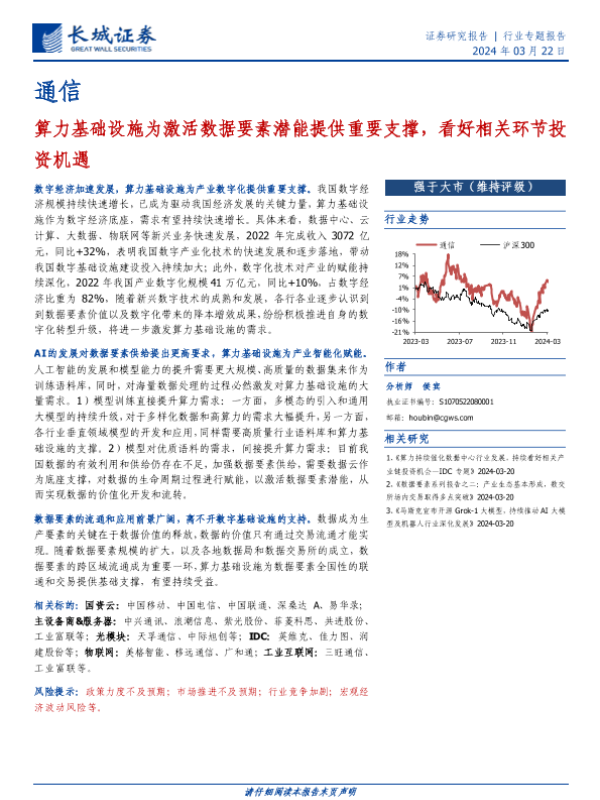 【长城证券】【20240322】通信行业专题报告:算力基础设施为激活数据要素潜能提供重要支撑,看好相关环节投资机遇-15页