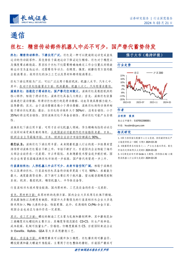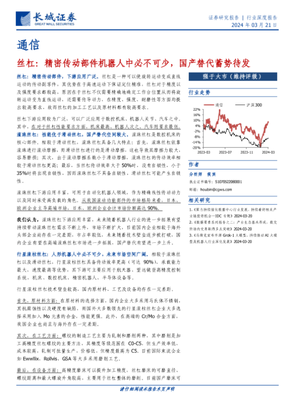 【长城证券】【20240321】通信行业深度报告-丝杠:精密传动部件机器人中必不可少,国产替代蓄势待发-25页