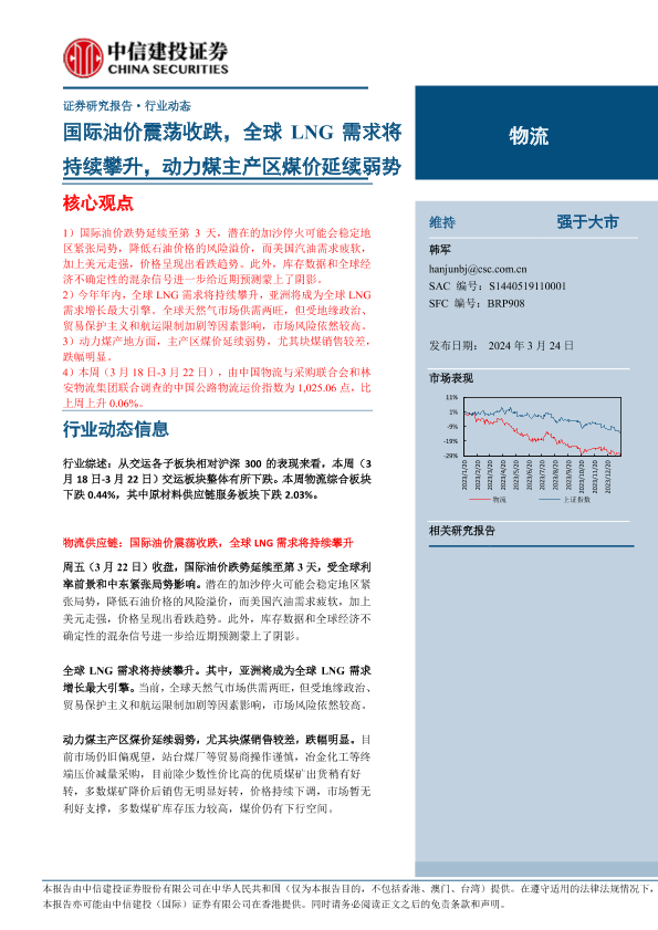 【中信建投证券】【20240324】物流行业:国际油价震荡收跌,全球LNG需求将持续攀升,动力煤主产区煤价延续弱势-16页