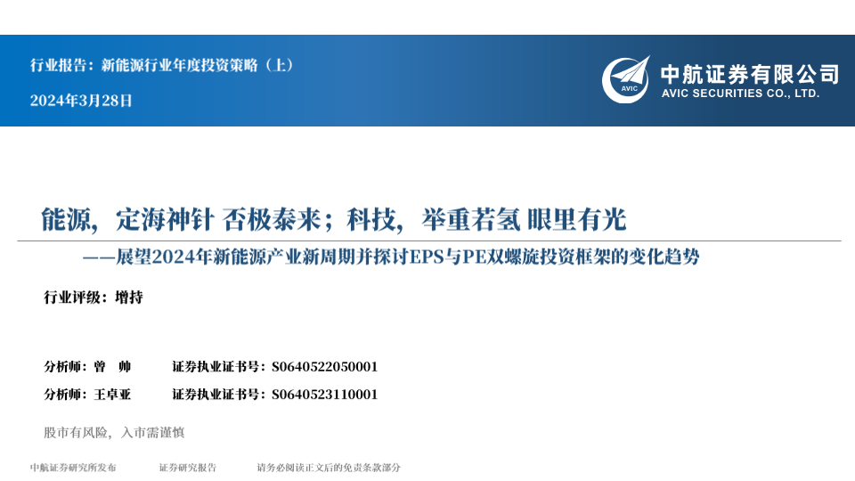 【中航证券】【20240327】新能源行业:2024新能源行业年度投资策略报告(上)-67页