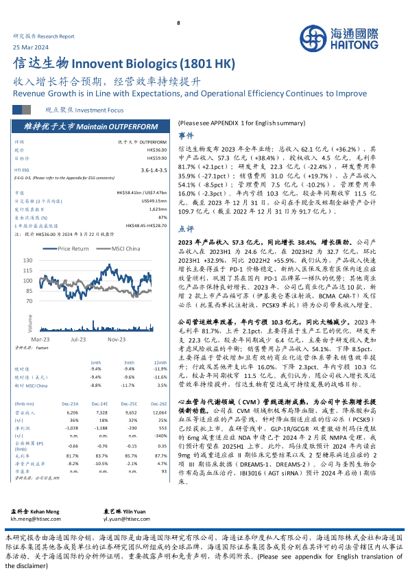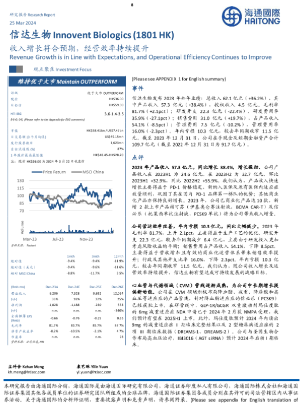 【海通国际】【20240325】信达生物(1801.HK)收入增长符合预期,经营效率持续提升-16页