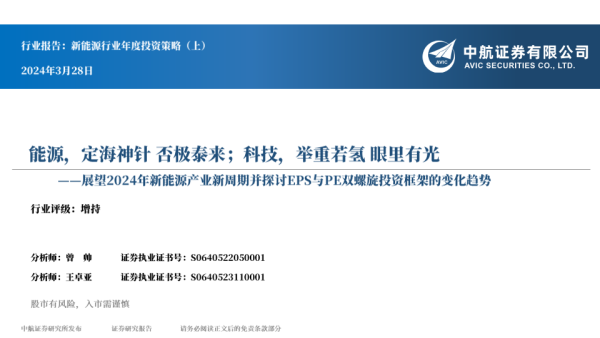 【中航证券】【20240328】2024年新能源产业新周期并探讨EPS与PE双螺旋投资框架的变化趋势,能源,定海神针,否极泰来;科技,举重若氢,眼里有光-65页
