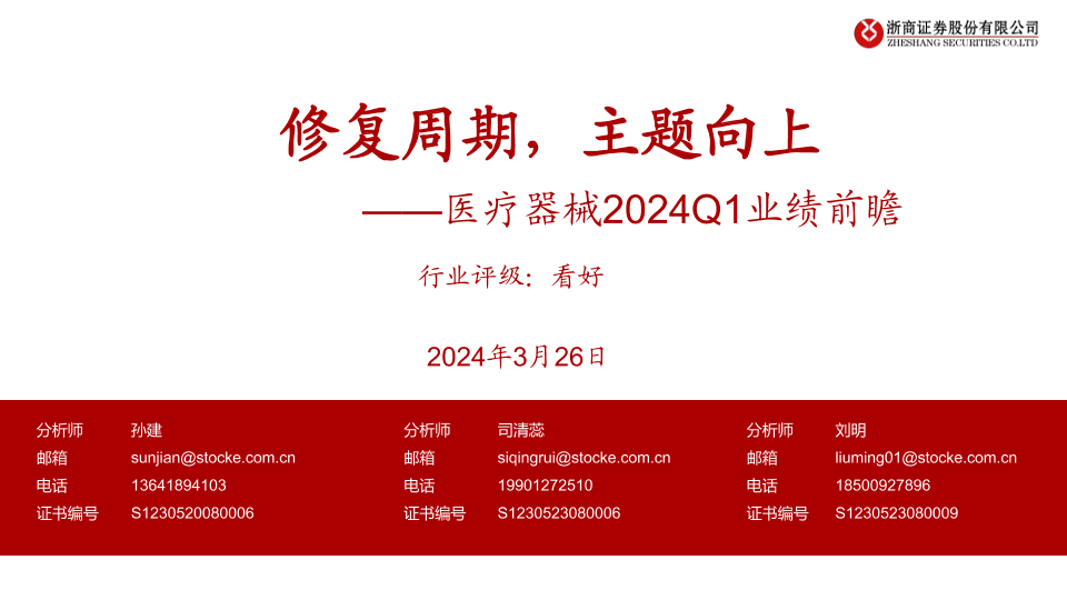 【浙商证券】【20240326】医疗器械行业2024Q1业绩前瞻:修复周期,主题向上-32页