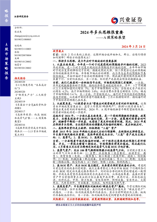 【兴业证券】【20240324】2024年多头思维很重要——A股策略展望-14页