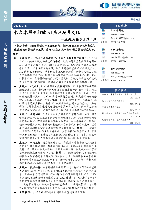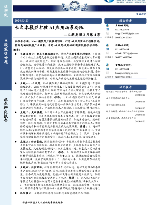 【国泰君安证券】【20240323】主题周报3月第4期:长文本模型打破AI应用场景局限-21页