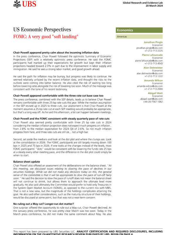 【UBS Securities LLC】【20240320】US Economic Perspectives FOMC A very good 'soft landing'-7页
