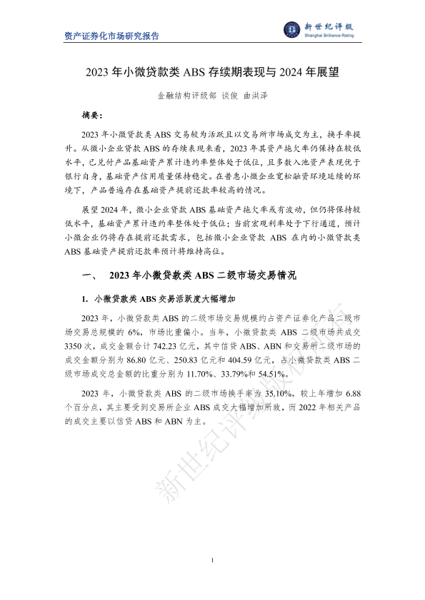 【金融结构评级部】【2023】2023年小微贷款类ABS存续期表现与2024年展望-9页