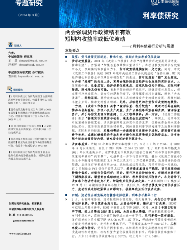【中诚信国际】【202403】两会强调货币政策精准有效,短期内收益率或低位波动-9页
