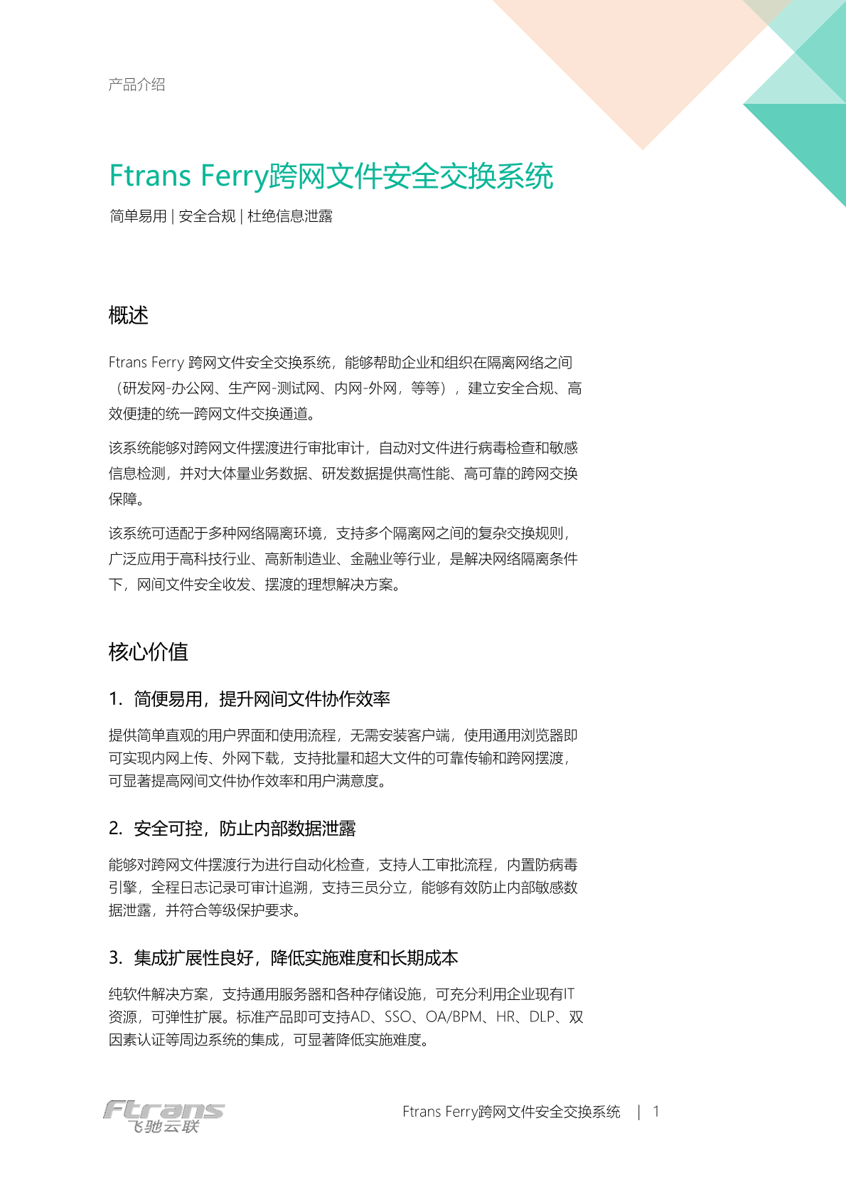 【飞驰云联(南京)科技有限公司】Ftrans Ferry跨网文件安全交换系统白皮书-4页