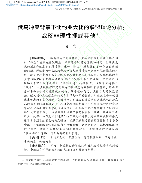 【肖河】【2024】俄乌冲突背景下北约亚太化的联盟理论分析 战略非理性抑或其他-31页