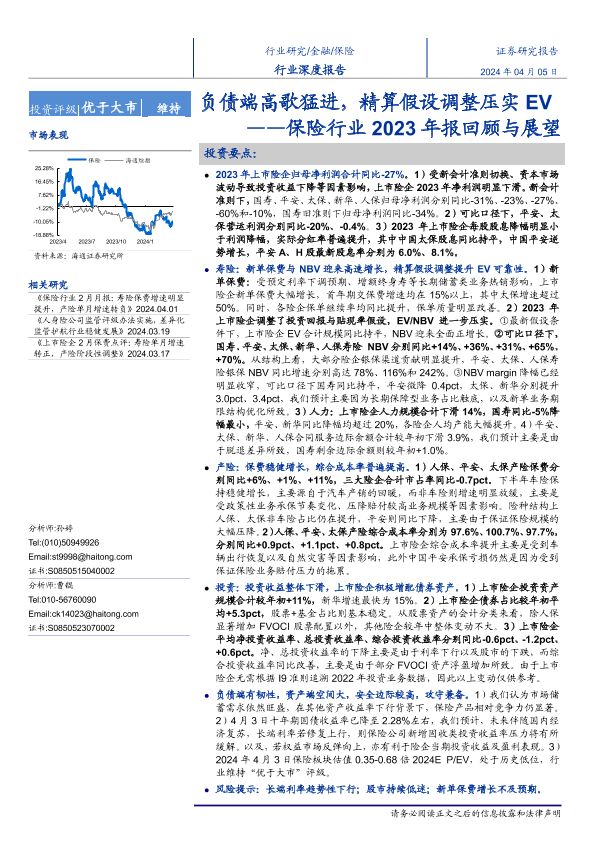 【海通证券】【20240405】保险行业2023年报回顾与展望:负债端高歌猛进,精算假设调整压实EV-32页