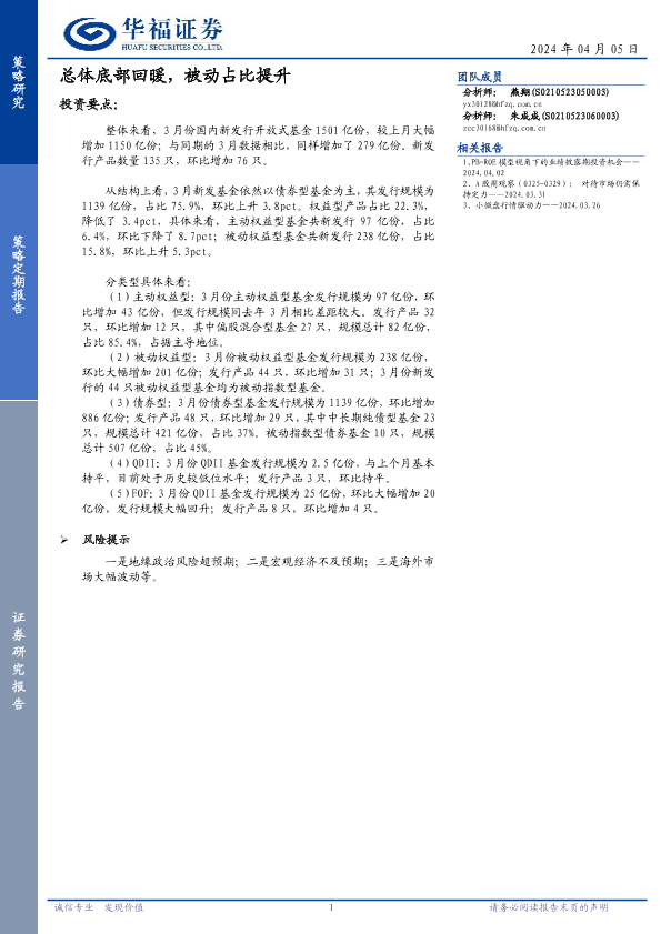 【华福证券】【20240405】策略定期报告:总体底部回暖,被动占比提升-11页