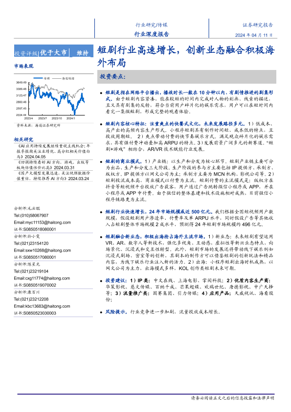 【海通证券】【20240411】传媒行业深度报告:短剧行业高速增长,创新业态融合积极海外布局-14页