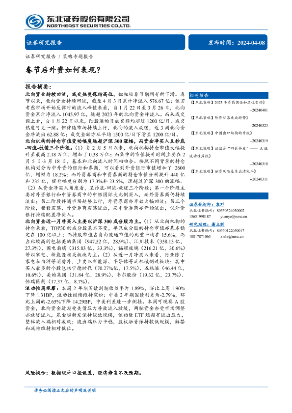 【东北证券】【20240408】春节后外资如何表现?-20页