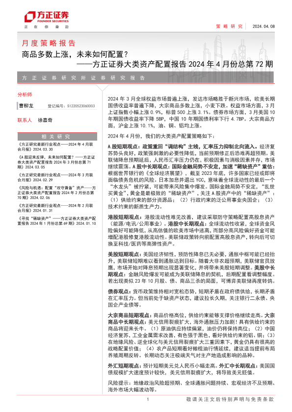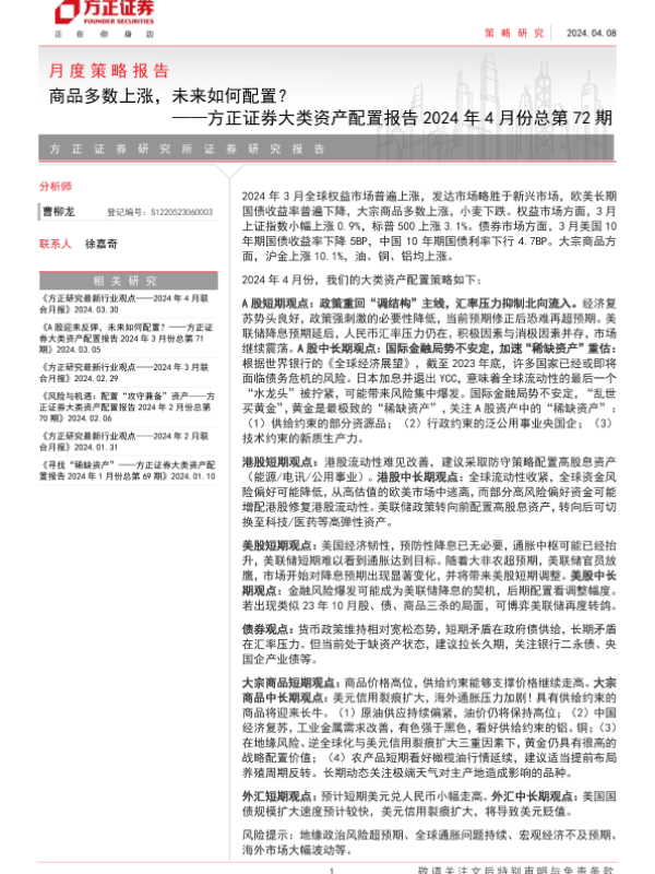【方正证券】【20240408】大类资产配置报告2024年4月份总第72期:商品多数上涨,未来如何配置?-27页