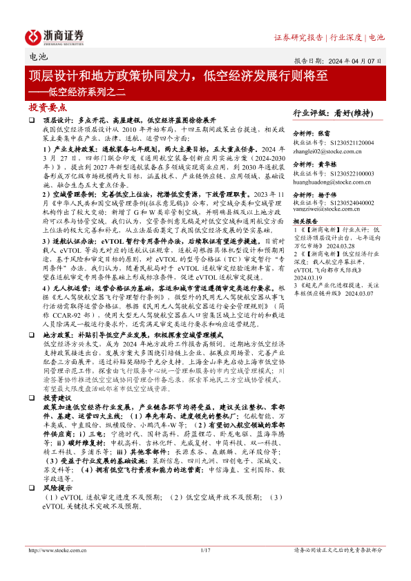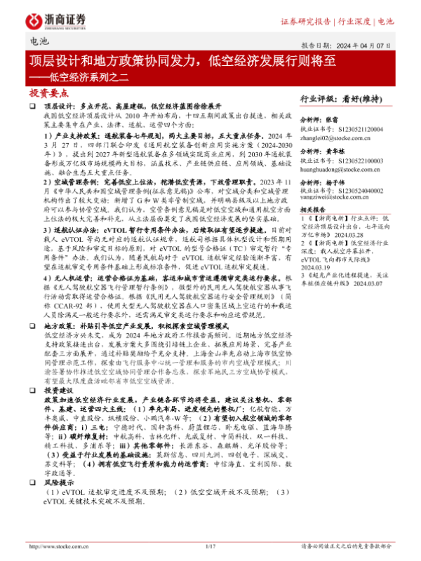 【浙商证券】【20240407】电池行业低空经济系列之二:顶层设计和地方政策协同发力,低空经济发展行则将至-17页