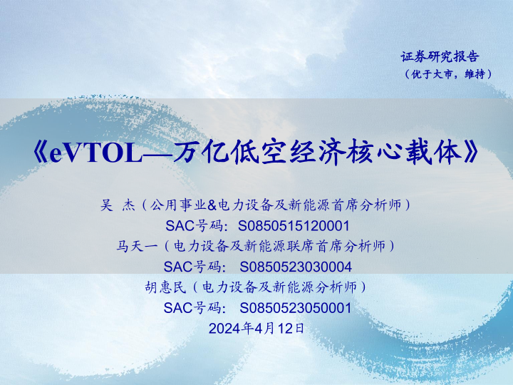 【海通证券】【20240412】eVTOL—万亿低空经济核心载体-27页