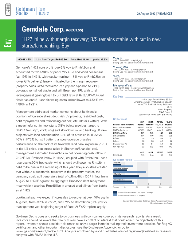 【Goldman Sachs】【20220829】rgin recovery; B_S remains stable with cut in new starts_landbanking; Buy-10页