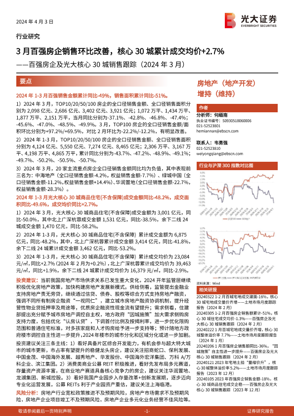 【光大证券】【20240403】业百强房企及光大核心30城销售跟踪(2024年3月)-14页