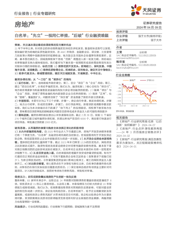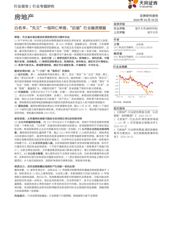 【天风证券】【20240409】房地产行业专题研究-白名单:“先立”一视同仁举措,“后破”行业融资难题-25页