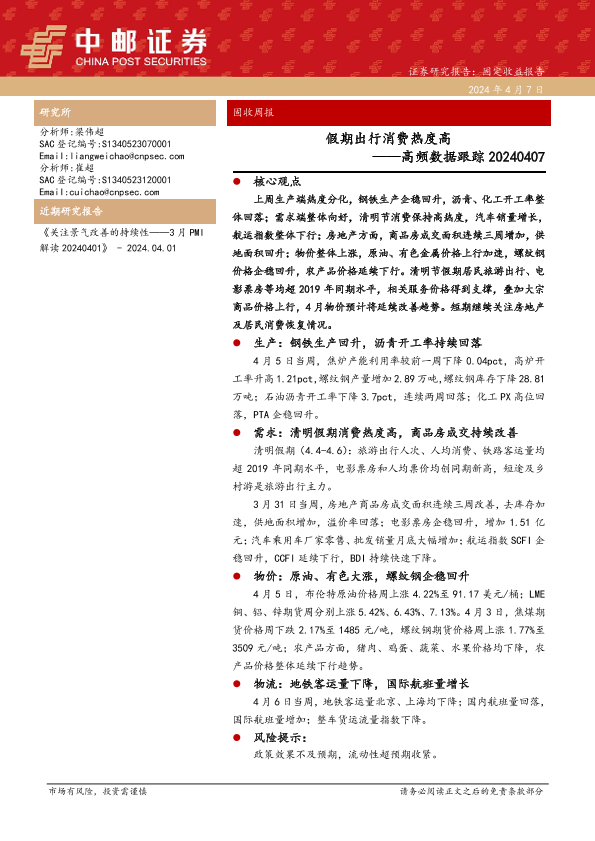【中邮证券】【20240407】高频数据跟踪:假期出行消费热度高-13页